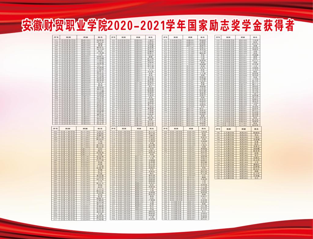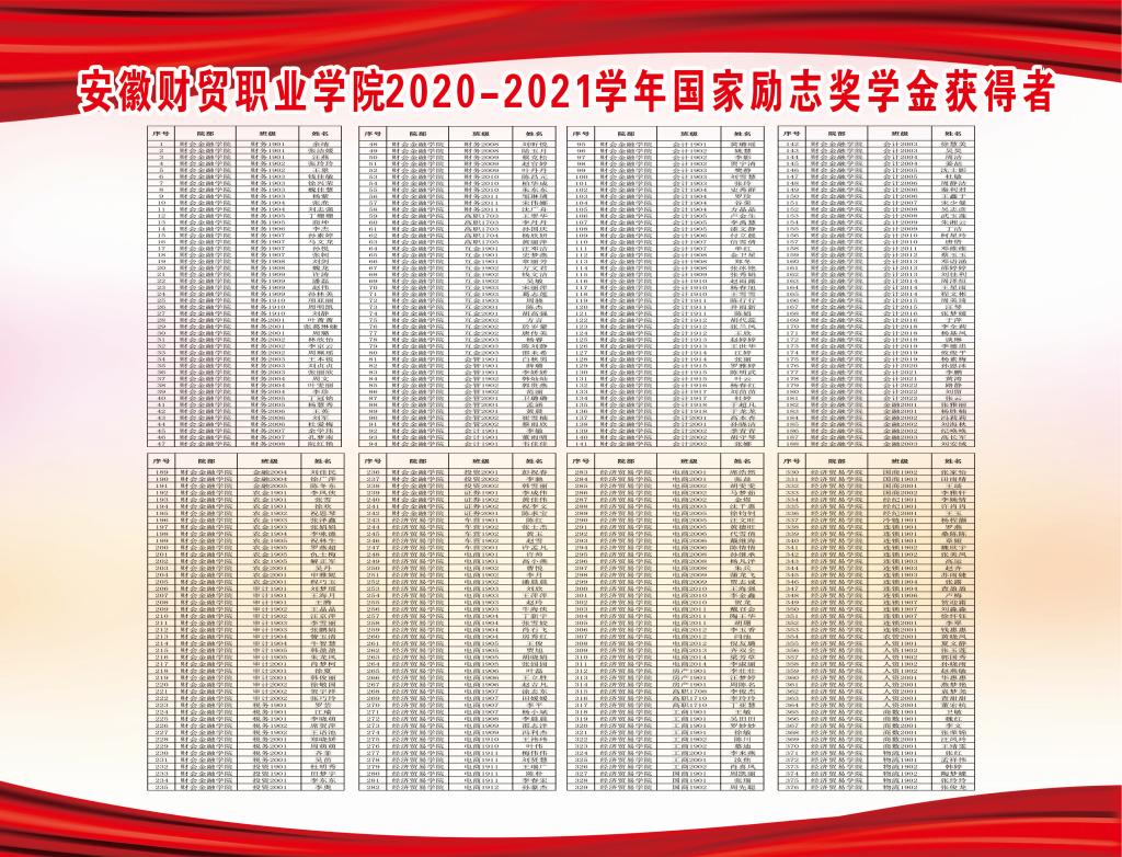 二、2020-2021学年国家励志奖学金获得者: