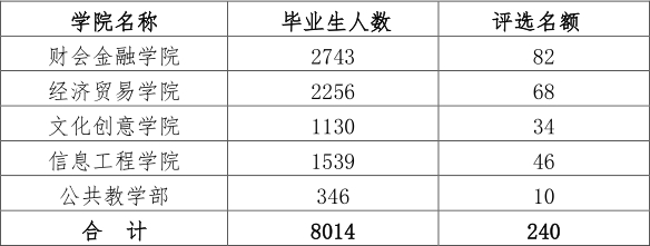 根据皖教学〔2021〕1号文件规定,学院按照在籍全日制高职专科层次毕业生总人数的3%比例评选推荐省级优秀毕业生人选,2022年毕业生人数8014人,评选名额为240名。具体名额分配如下: