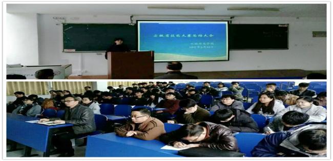3月22日下午,云桂信息学院在6101教室召开2017年安徽省职业院校技能大赛参赛学生总结分享大会,该院领导张成叔、倪晶晶、姚成出席大会,全体参赛的56位同学和22位大赛指导老师参加了大会。