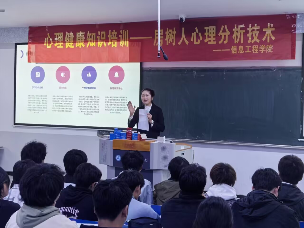 为了切实加强大学生心理健康教育,充分发挥学校心理健康教育工作的作用,信息工程学院于11月13日在6201教室开展了以“房树人”心理分析技术培训,本次活动由心理学专业岳吉方老师担任主讲。