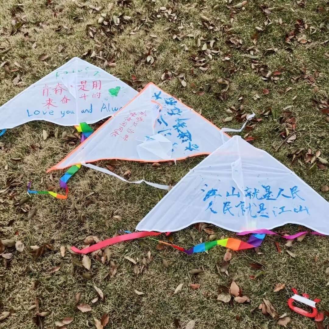 立鸿鹄之志,展鲲鹏之姿,作为新时代的朝阳力量,我们要把青春之梦融入时代大潮,正如那写满美好期冀的纸鸢放飞于天际。活动过程中一片欢声笑语,同学们积极动手组装风筝,更是互帮互助,让每一位同学都能将风筝送入悠悠蓝天。看着风筝在手中放飞,大家不仅收获了紧张学业之余的闲暇放松,更在心中描绘出以青春热血浇灌出梦想之树的美好图景。