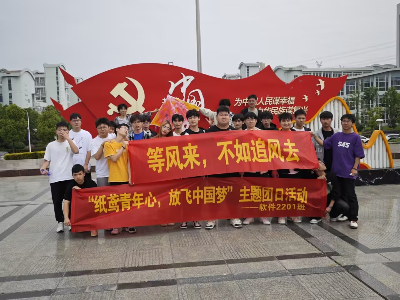 为庆祝中国共青团成立101周年,弘扬五四精神,展现青年人爱国逐梦的精神风貌,坚定永远跟党走、建功新时代的信念并增强团支部的组织力、凝聚力,值此五四青年节来临之际,软件2201班举办"中国梦"主题的放飞风筝活动。