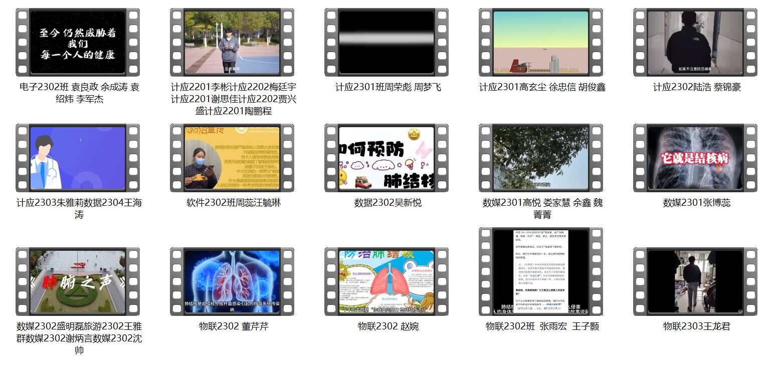 比赛共收到38个视频作品,每个同学都在用自己的方式来向大家宣传结核病的知识,呼吁大家为了身体健康,远离结核病。一份视频,展示的不仅仅是结核病的危害,还有创作人的每一个观看者的殷切期盼;一段文字,展示的不仅仅是血淋淋的事实,还有医护人员为之付出的心血;一份音频,展示的不仅仅是结核病的发展史,还有给病患及家人所带来的痛苦。每个创造者用他们的作品,直观简明地向大家阐述了结核病所带来的危害和痛苦。
