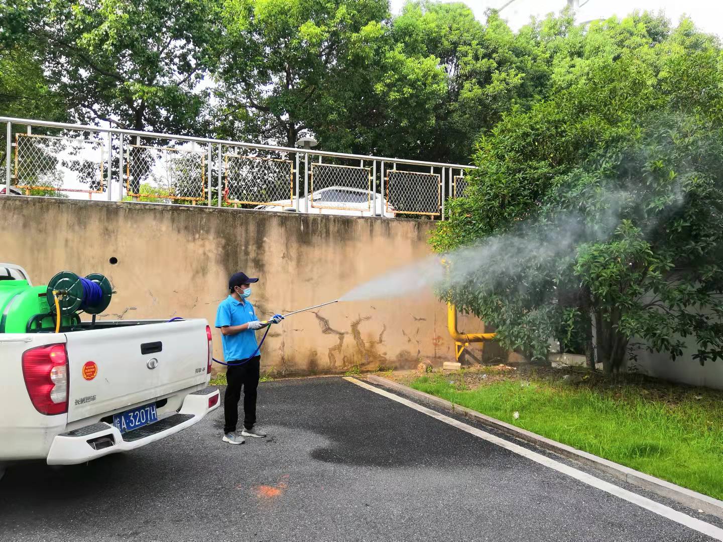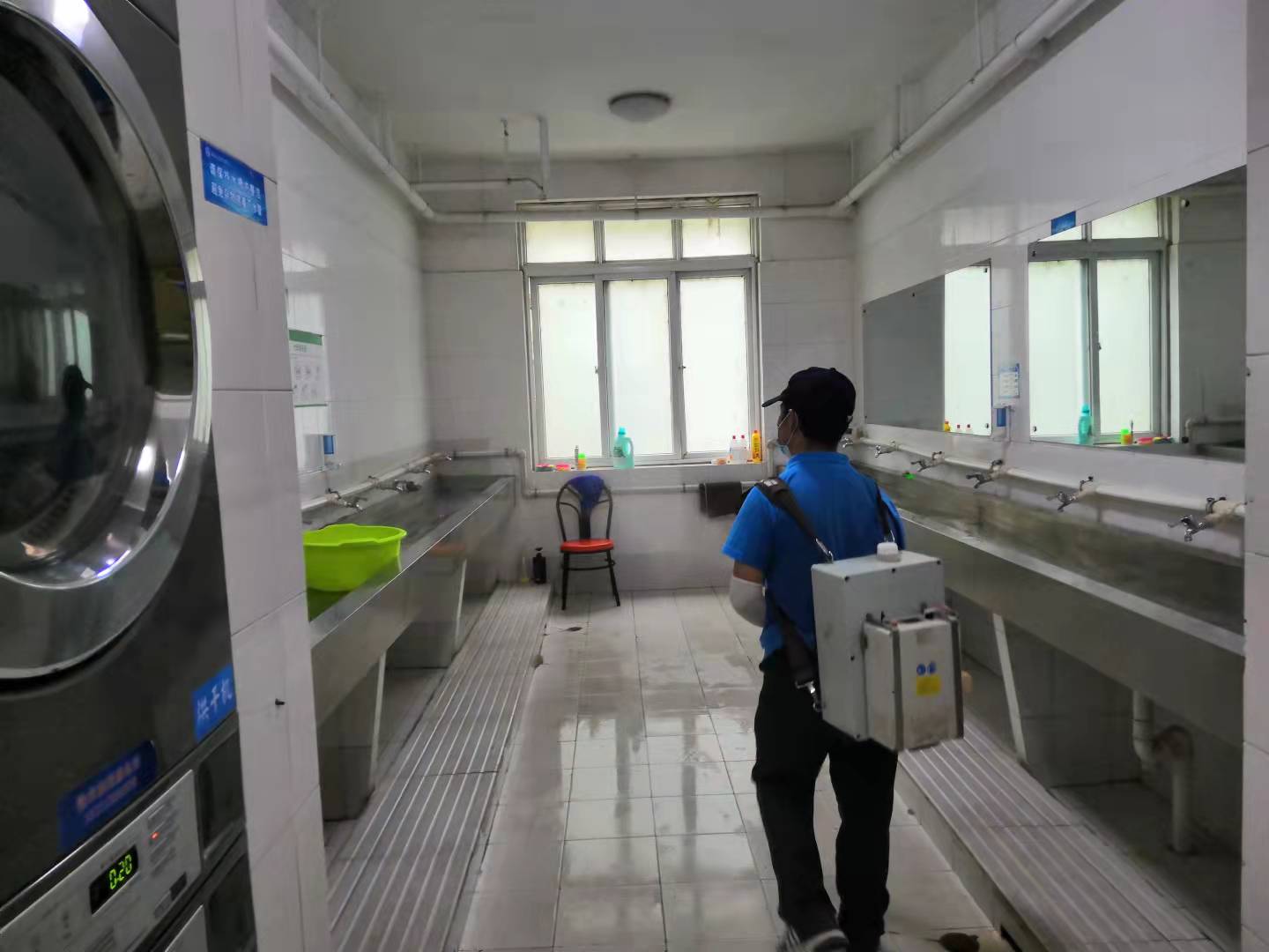 全面开展校园环境消毒消杀工作。9月1日,总务处组织专业消杀公司对校园环境及校内所有场所开展全面消毒消杀活动。消杀人员手持专业设备对校园食堂、通道、垃圾房、草场、教室、公寓等公共区域进行全方位、无缝隙、无死角防疫消毒作业,切实筑好校园防疫墙,为师生们返校全力营造安全健康的校园环境。