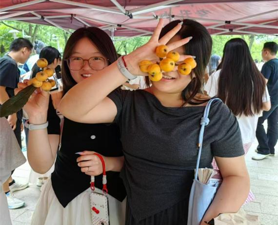 中午时分,广场上前来领取、品尝枇杷的师生络绎不绝,欢声笑语不断。未来技术学院的陈同学笑着说:“没想到在离校前,还能收获惊喜!枇杷特别甜,是母校的味道。”师生们领取后纷纷拍照打卡留念。